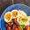 Oatmeal with some Greek vanilla yogurt, pinch of salt, chia flax seed mix and some honey. Sometimes an omelette with mushrooms,spinach, tomatoes ...